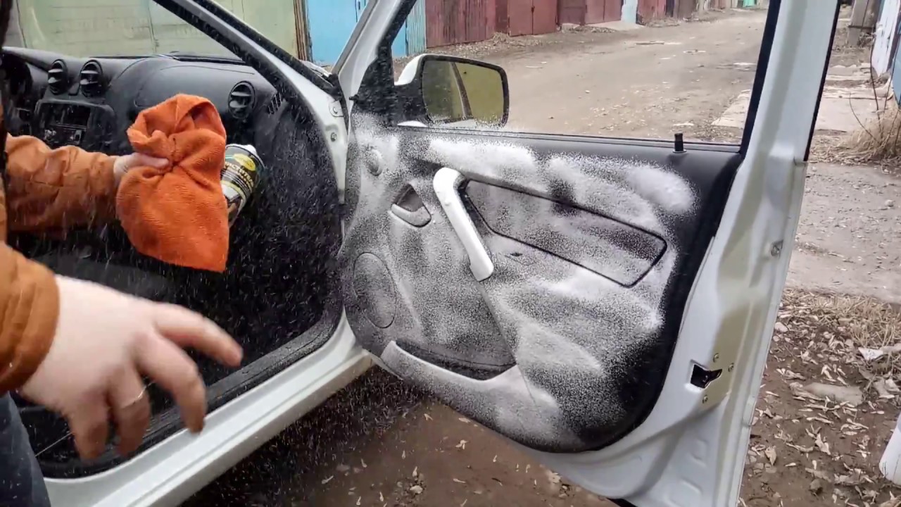 В первую очередь, следует отключить зажигание и снять магнитолу. Начинать уборку рекомендуется с потолка. Для этого подойдут аэрозоли или пена. Можно использовать специальные чистящие средства или же Vanish, который часто применяют для чистки ковров. После разведения средства в воде и получения пены, ее нужно нанести на поверхность и оставить на некоторое время. Затем возьмите сухую тряпку и протрите, убирая остатки средства.