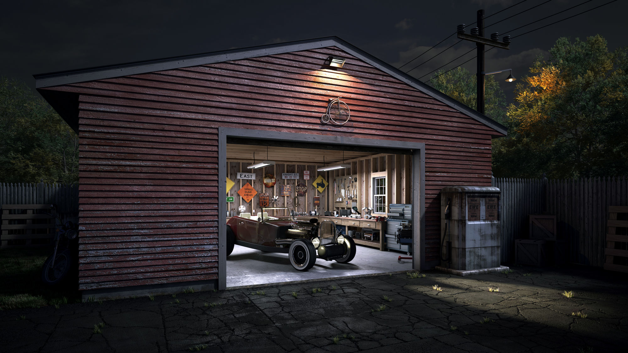 Наличие коммуникации – огромный плюс. В стандартном гараже обязательно должно быть хорошее освещение, желательно в нескольких зонах, если гараж большой или предусмотрена отдельная рабочая поверхность. Не лишним будет наличие водоснабжения. Обязательно должны присутствовать розетки для электроприборов.