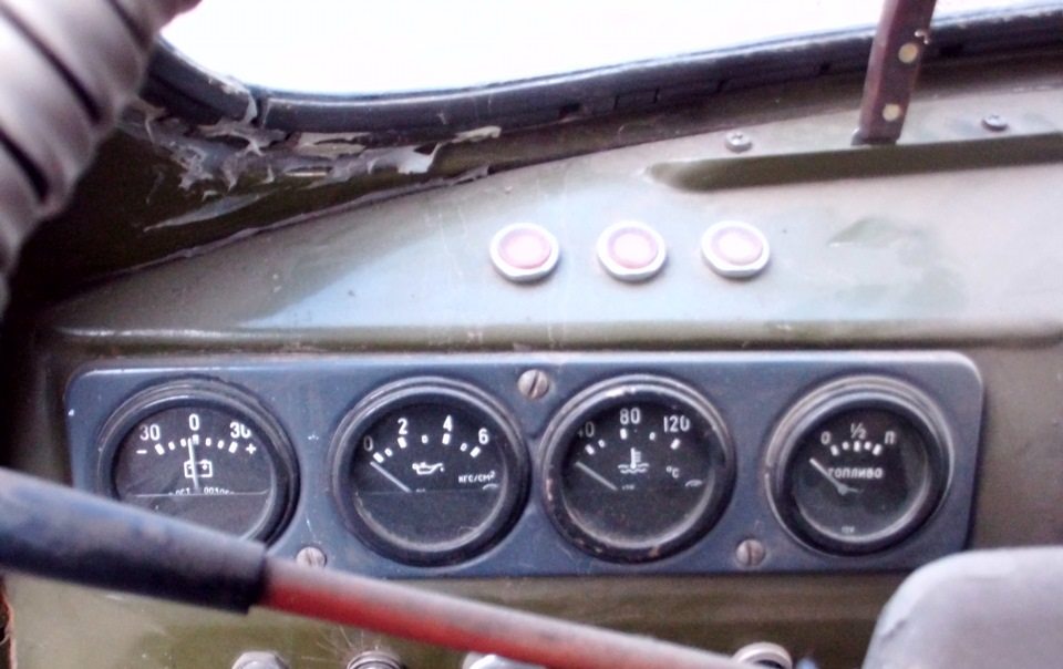 Примечание: У автомобилей УАЗ также различаются контрольные приборы. На некоторых моделях вместо вольтметра устанавливался амперметр. Проводка УАЗ 452 позволяла подключить вольтметр в разрыв между аккумулятором и системой зажигания.